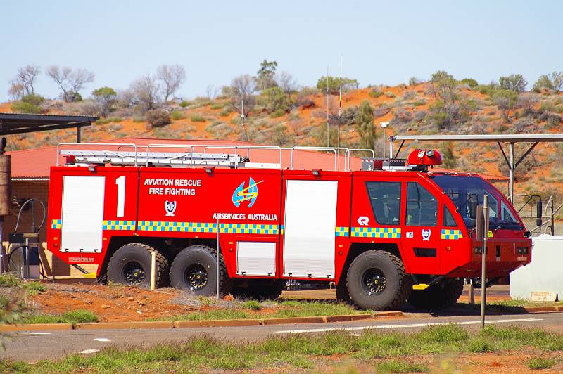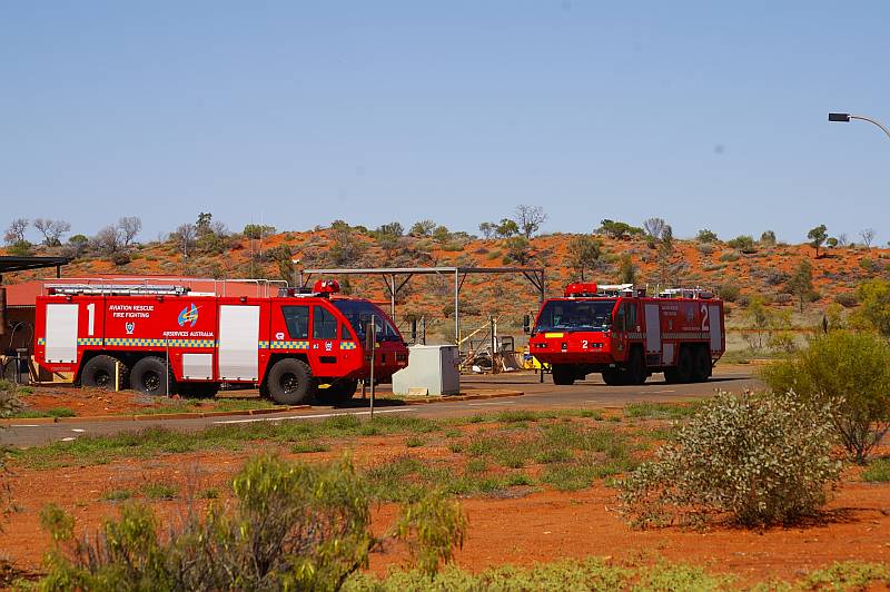 Vorher statten wir dem hiesigen „Airport“ noch einen kurzen Besuch ab. Auf dem Hinweg sehen wir gerade eine Maschine starten, angekommen, soll in ca. 2 Std. die nächste aus Sydney landen und nach 1 Std. zurück fliegen. Auf dem Parkplatz können wir noch kurz die Flotte der Flughafenfeuerwehr bewundern.