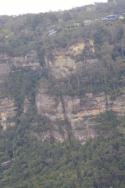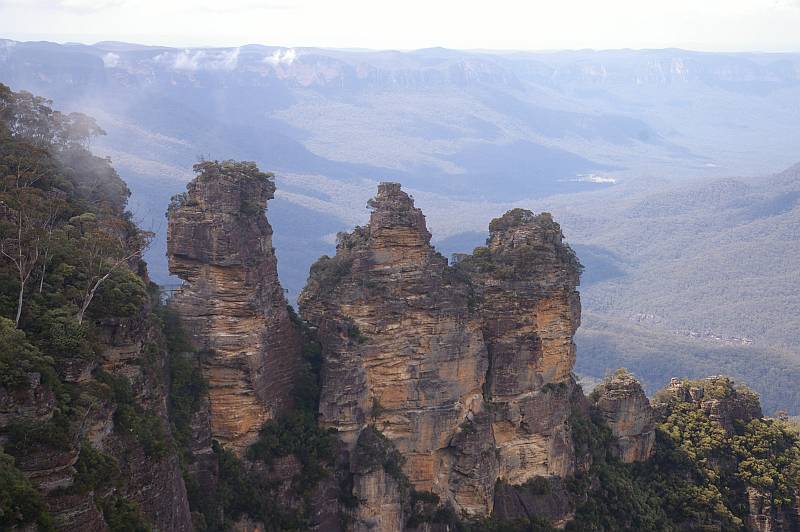 Nach Studium der Karten beschliessen wir es dann doch nochmal mit der Küste zu probieren, schlimmer kann es nicht kommen. Wir wollen den Highway durch die Blue Mountains fahren und wenn das Wetter es einigermassen zulässt vielleicht nochmal versuchen zu den „3 Sisters“ zu gucken. Je höher wir kommen desto besser wird das Wetter, sogar die Sonne kommt durch. Naja, wollen wir uns mal nicht zu früh freuen, dann und wann ziehen schon noch Nebelschwaden über die Strasse, auch ein Schauer kommt nochmal runter. Doch als wir in Katoomba ankommen, ist es soweit ok, das wir abbiegen. Von gestern wissen wir schon in etwa wo wir parken können. Dann also Regenjacke an und los.